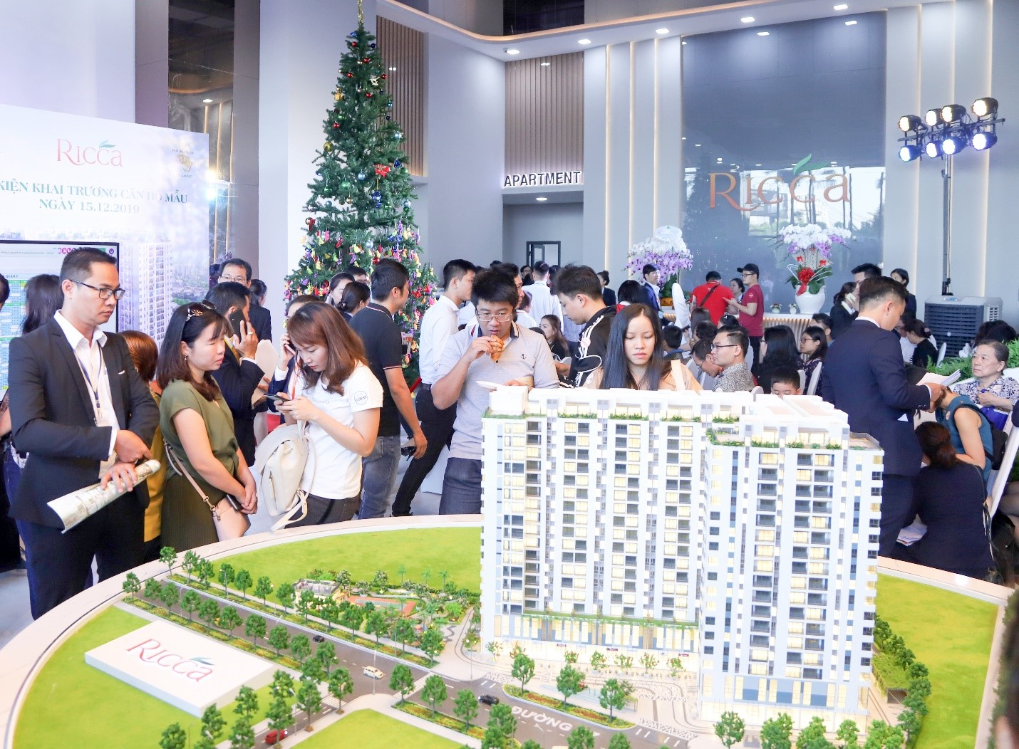 Cuối năm 2019, thị trường bất động sản trở lại sôi động với sự ra mắt của nhiều dự án nổi bật. Trong số đó, khu căn hộ Ricca tại trung tâm Q.9 tạo “sóng” nhờ mức giá hợp lý, thu hút hàng ngàn khách hàng đến tham quan căn hộ mẫu trong ngày khai trương.