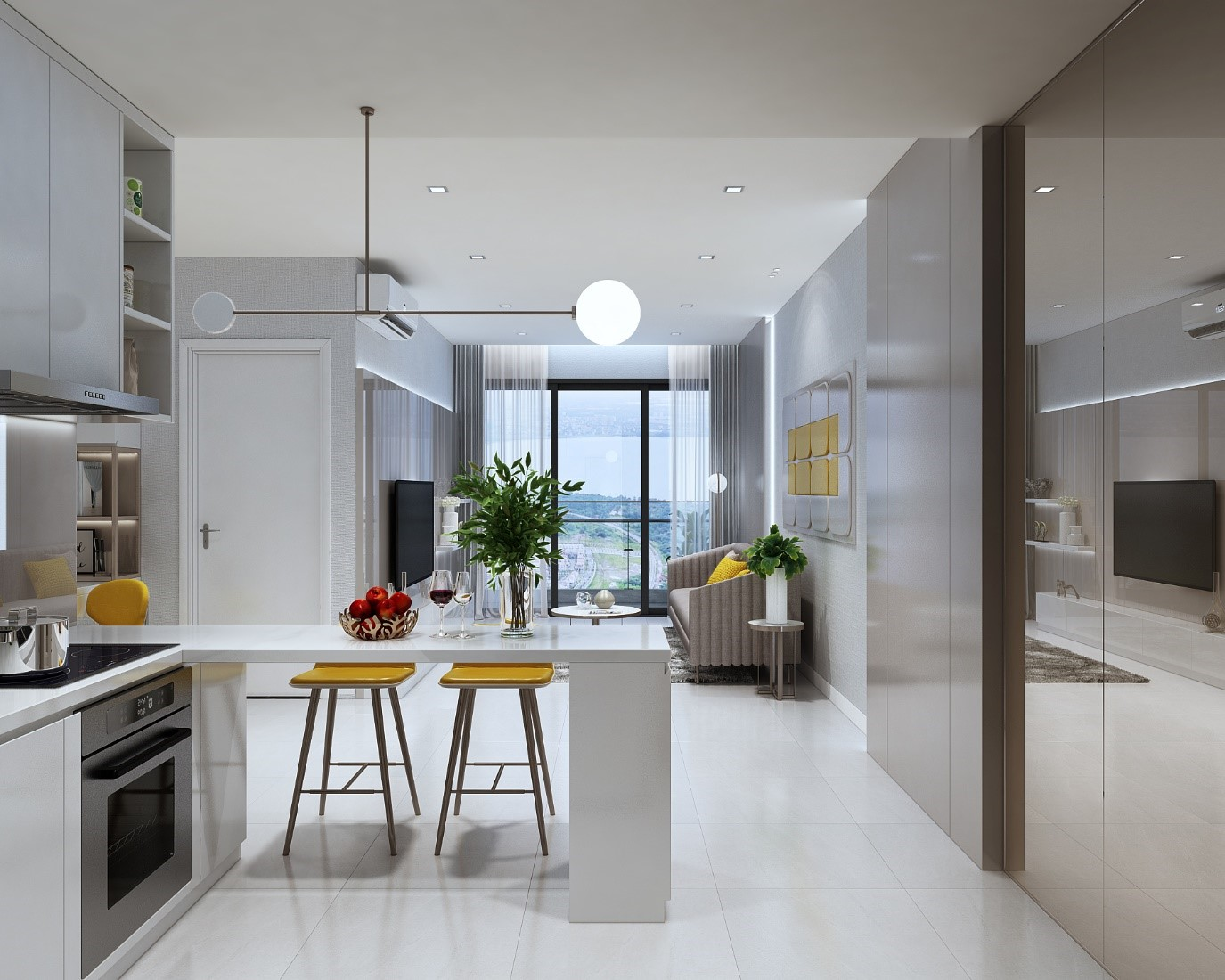 Nhẩm tính, một căn hộ khoảng 56m2 gồm 1 phòng ngủ và 1 phòng chức năng – vừa đủ không gian thoải mái cho một gia đình nhỏ chỉ có giá khoảng 1,7 tỷ đồng, được bố trí tinh tế, tối ưu công năng nhằm gia tăng không gian sinh hoạt.