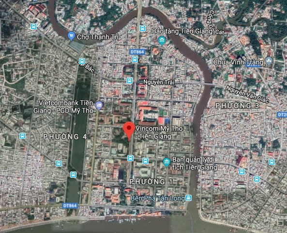 Khu đất tại số 1A, đường Hùng Vương, phường 1, thành phố Mỹ Tho được xác định là đất vàng của Tiền Giang khi nằm ngay phường trung tâm của thành phố Mỹ Tho và có 3 mặt tiển đường gồm: Phía Đông giáp đường Hùng Vương; Phía Nam giáp đường Thủ Khoa Huân; Phía Bắc giáp đường Lê Đại Hành; Phía Tây giáp khu dân cư hiện hữu.