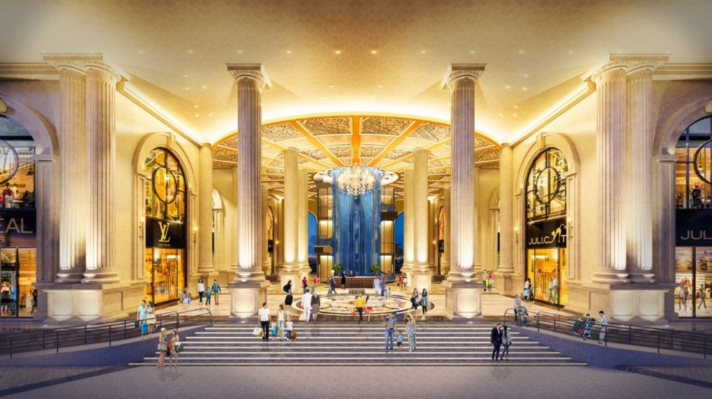 Quảng trường Trevi Square với hàng cột hoành tráng cao 14m cùng phong cách thiết kế đậm chất La Mã vương giả gây choáng ngợp cho mọi người từ khi bước vào công trình