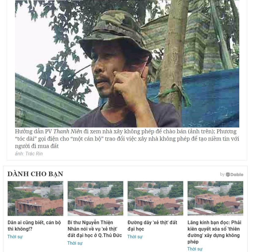 Theo phản ánh của báo, việc mua bán, xây dựng trái phép trên đất quy hoạch của ĐH Nông Lâm, ĐH Quốc gia TP.HCM được các đầu nậu rao bán nhà, đất với giá từ 500 triệu căn, giao dịch giấy tay.