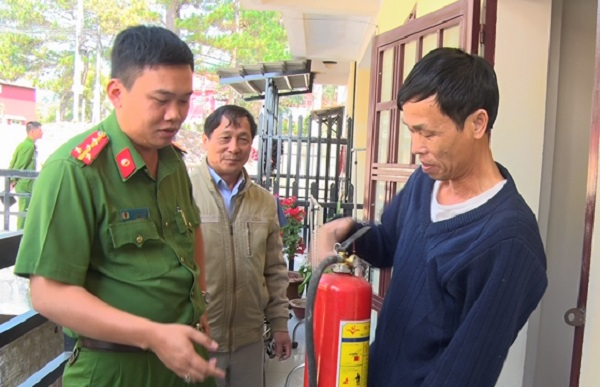 Kiểm tra thiết bị PCCC tại chung cư ở Đà Lạt. Ảnh: Đoàn Kiên