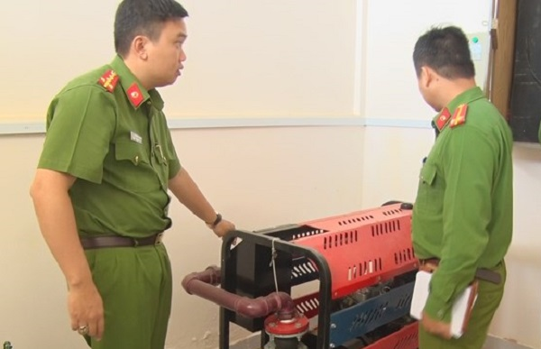 Lực lượng chức năng kiểm tra thiết bị PCCC. Ảnh: Đoàn Kiên