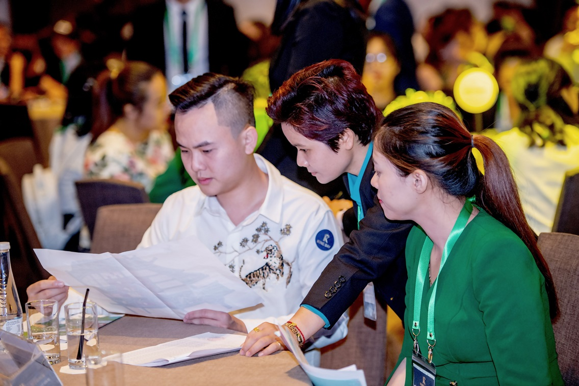 Nhân viên kinh doanh Tập đoàn BĐS TLM tư vấn cho khách hàng tại sự kiện