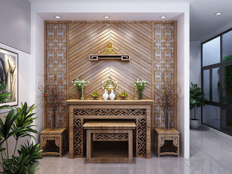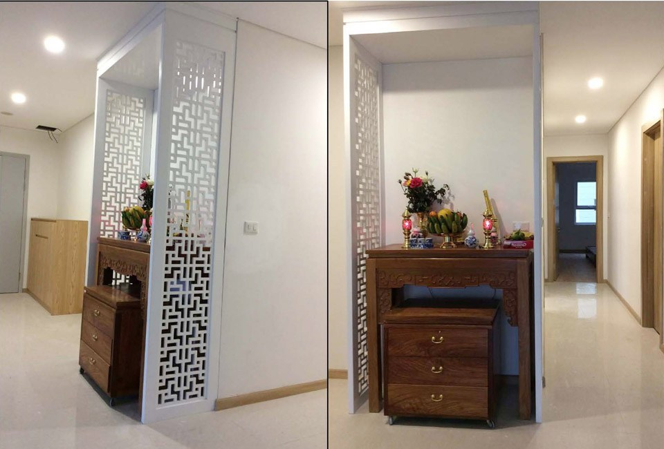 * Bàn thờ có vách ngăn mang lại không gian riêng tư