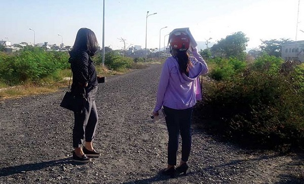 Cò đất đang giới thiệu với khách hàng mua nền trong khu nhà ở gia đình quân nhân Quân chủng Phòng không-Không quân tại phường Thắng Nhất, TP Vũng Tàu. Ảnh: K.Ly