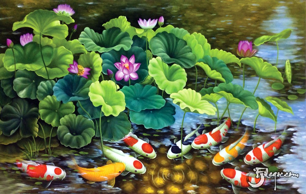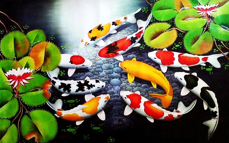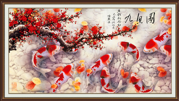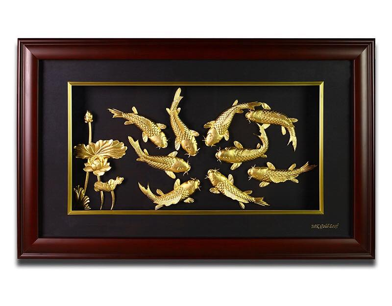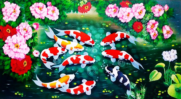 Alomuabannhadat – Cửu ngư quần hội (Cửu ngư đồ) là loại tranh được nhiều gia đình Việt ưa chuộng bởi hình ảnh đàn cá chép 9 con quây quần bên nhau thể hiện sự kiên trì, bền bỉ và mang đến cho gia chủ sức khỏe dồi dào, rước lộc vào nhà.
