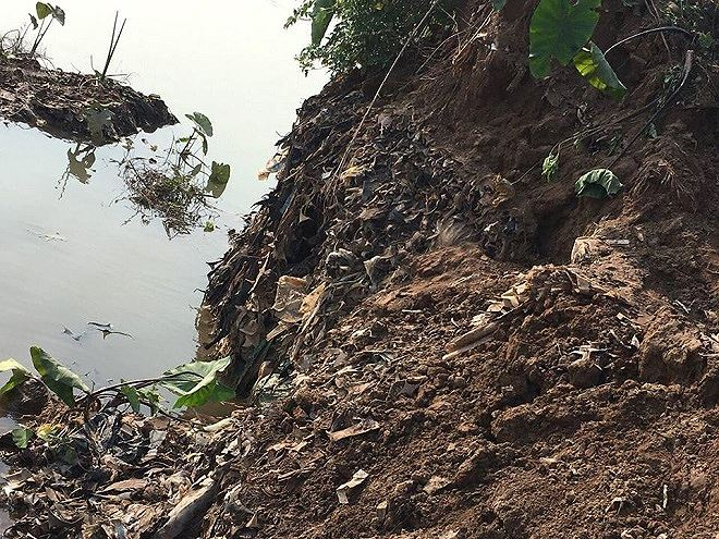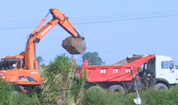 Trên diện tích đất bãi hơn 7 héc ta, những chiếc máy xúc, xe tải ngày ngày xúc đất chuyển đi. Những ao sâu, thùng vũng trên bãi bồi phì nhiêu được lấp lại bằng… rác “lậu”.