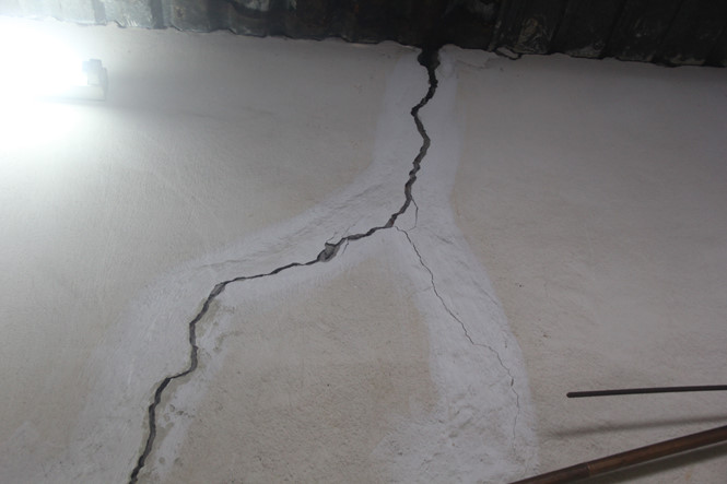 Các vết nứt trong nhà ông Nguyễn Mười. ẢNH: N.T