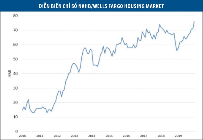 Theo Hiệp hội Các doanh nghiệp xây dựng (NAHB), các công ty xây dựng tỏ ra tự tin với thị trường bất động sản trong năm mới, cổ vũ hoạt động của nhóm doanh nghiệp này. Chỉ số NAHB/Wells Fargo Housing Market (công bố hàng tháng đo lường đánh giá của chủ thầu xây dựng với doanh số bán hàng kỳ vọng trong 6 tháng tiếp theo) ở mức 76 điểm trong tháng 12/2019, mức cao nhất kể từ tháng 6/1999. Chỉ số này bắt đầu năm 2019 ở mức 58 điểm.