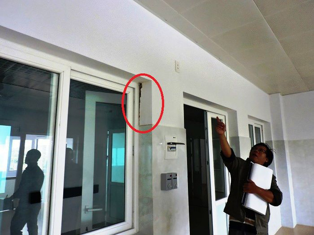 Công trình xuất hiện nhiều vết nứt trên tường.