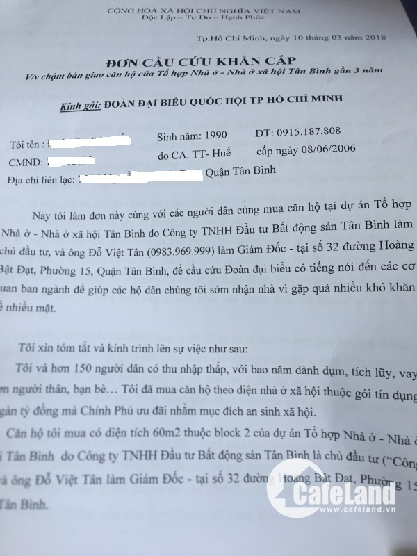 Alomuabannhadat – Khách hàng mua nhà tại dự án chung cư Tân Bình Apartment (quận Tân Bình, TP.HCM) khốn khổ khi dự án chậm tiến độ nhiều năm, họ đứng trước áp lực trả lãi vay ngân hàng và tiền thuê trọ hàng tháng.