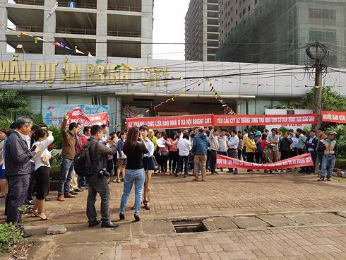 Ngày 19/3, nhiều khách hàng mua nhà tại dự án nhà ở xã hội Bright City (huyện Hoài Đức, Hà Nội) đã tập trung, căng băng tại công trình để phản đối chủ đầu tư là Cty TNHH Bánh kẹo Thăng Long do liên tục chậm tiến độ, cũng như việc mới đây phía chủ đầu đòi thực hiện thanh lý hợp đồng của người mua nhà.