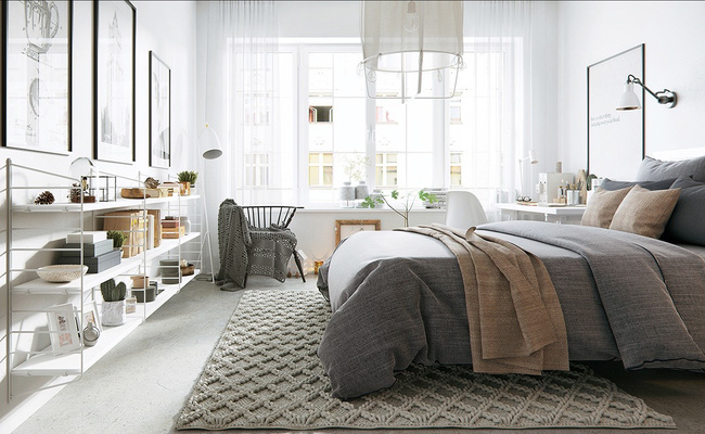 Lời khuyên mà các chuyên gia dành cho bạn đó là hãy tạo điểm nhấn bằng việc sử dụng những chiếc gối, tranh ảnh hay thảm trải sàn với những tông màu sắc khác nhau để phá bỏ sự nhàm chán của tông trắng chủ đạo trong không gian phòng ngủ thêm tươi mới, giàu sức sống.