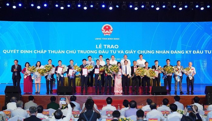 Alomuabannhadat - Tại hội nghị phát triển kinh tế miền Trung diễn ra ngày 20/8, UBND tỉnh Bình Định đã trao quyết định chấp thuận chủ trương đầu tư, giấy chứng nhận đăng ký đầu tư cho 15 dự án với tổng số vốn 36.252 tỷ đồng.