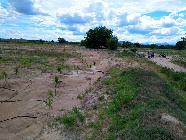 Bên cạnh đó, những diện tích đã khai thác hết cát bề mặt đã được ông Hồ Công Tồn trồng hàng nghìn cây xoài (mới trồng, chỉ cao 50 cm) cũng được ghi vào biên bản.