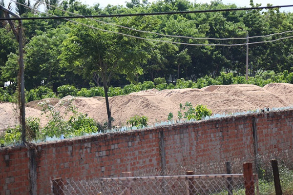 "Trước đây ông Tồn đã xây hàng rào mỏ cát lậu bao cả tim đường cao tốc, sau đó xã phát hiện báo lên huyện và đình chỉ. Nay ông Tồn xây ra vành đai kiên cố để đón đầu việc đền bù khi làm cao tốc" - cán bộ xã Sông Bình nói.