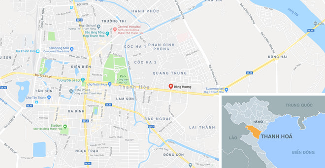 Dự án Khu dân cư An Phú Hưng nằm ở phường Đông Hương (chấm đỏ) - một trong những vị trí đắc địa nhất tại TP Thanh Hóa nhưng được đấu giá rất thấp. Ảnh: Google Maps.