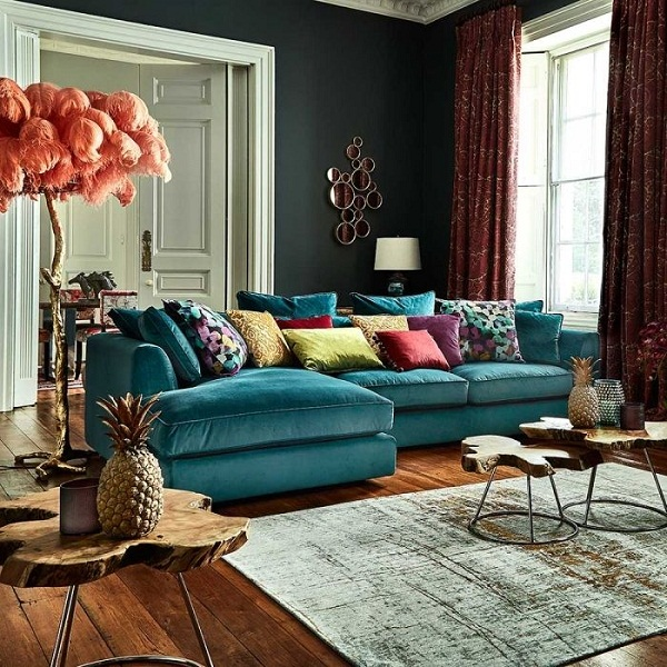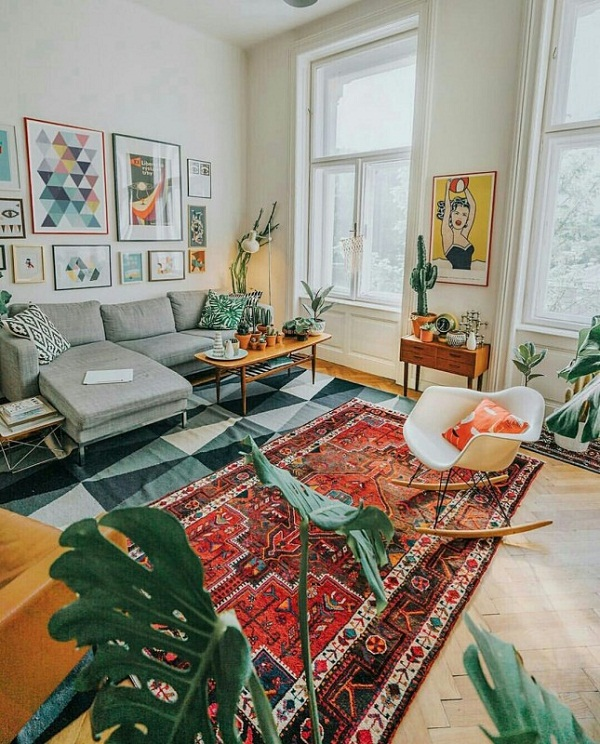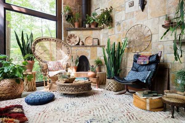 Đồ nội thất sử dụng trong phong cách Bohemian nổi bật là những sản phẩm dệt may, những phụ kiện chiết trung (kết hợp từ nhiều phong cách khác nhau) có họa tiết ấn tượng.