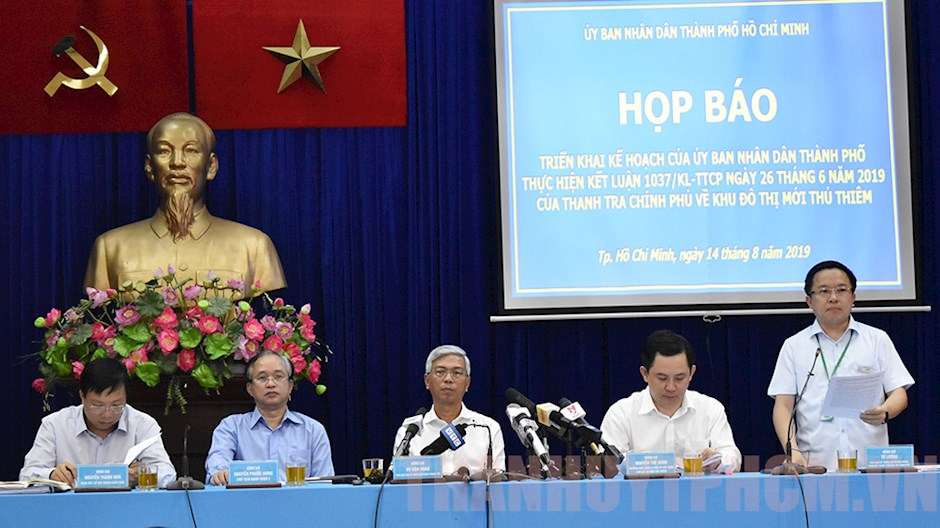 Alomuabannhadat - Chiều 14/8, Phó Chủ tịch UBND TP.HCM Võ Văn Hoan chủ trì họp báo triển khai kế hoạch của UBND thực hiện kết luận 1037/KL-TTCP ngày 26/6/2019 của Thanh tra Chính phủ về Khu đô thị mới Thủ Thiêm.