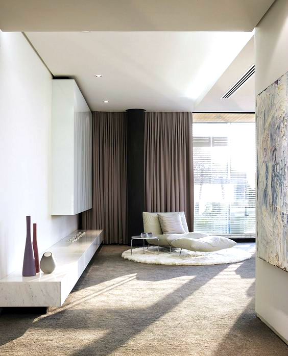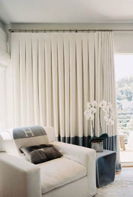 Kiểu trang trí rèm này vừa sang trọng vừa đơn giản rất phù hợp với ngôi nhà thiết kế hiện đại, tông màu trắng chủ đạo.