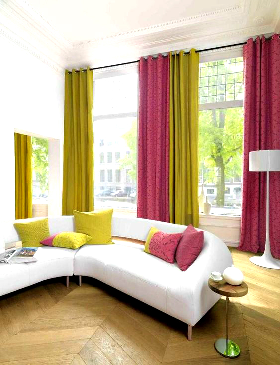 Tuy nhiên, có một số phòng ngủ cửa sổ khung kính lớn tầm nhìn toàn cảnh bên ngoài thì hãy làm điểm nhấn với rèm hai màu đơn sắc như hồng phối vàng.