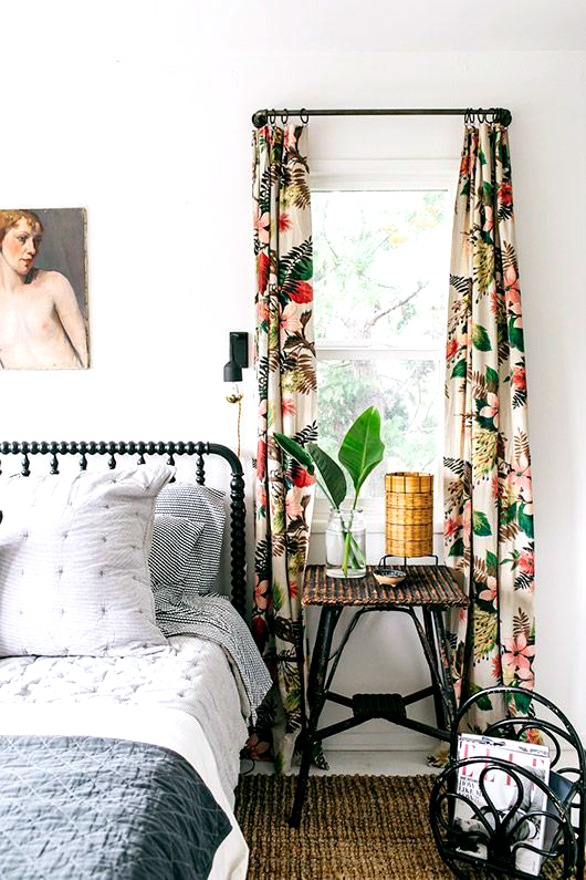Bên cạnh những chiếc rèm đơn sắc thì rèm hoa sống động sẽ khiến cho phòng ngủ thêm bắt mắt và ấn tượng.