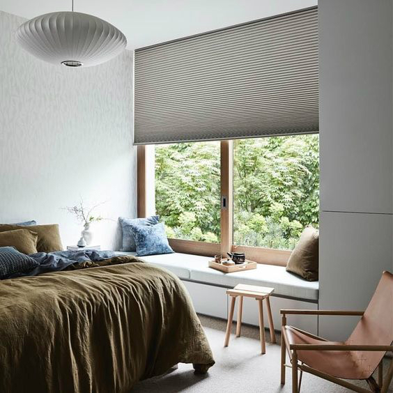 Đối với một căn phòng màu trung tính thì lại phù hợp rèm gấp màu sám hơn.