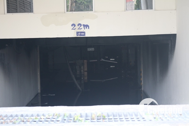 Tầng hầm đã được phun ngập nước, nhiều ô tô, xe máy kẹt bên trong