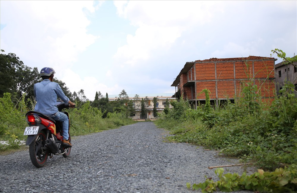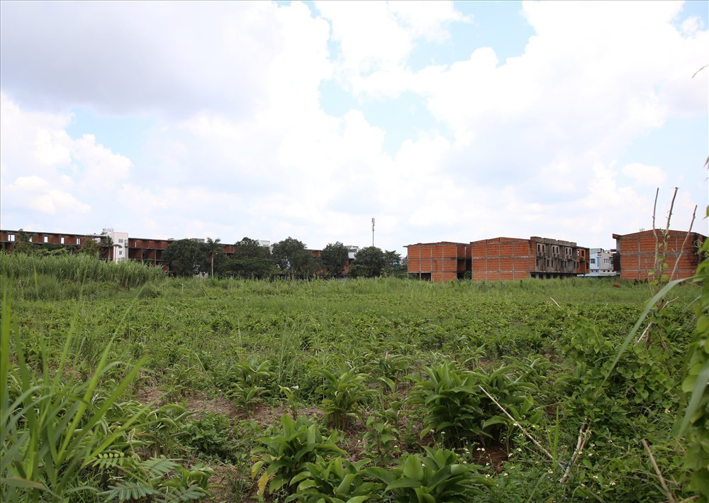 Còn nhiều lô đất trống, cỏ dại hai bên bò ra đường. Ảnh: H.Thơ.