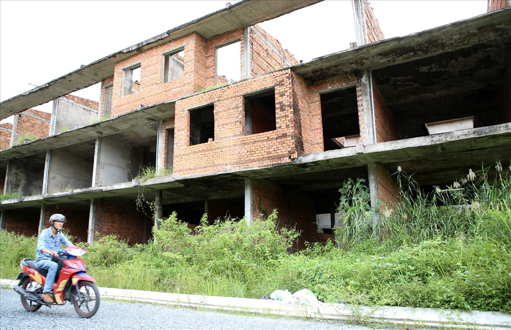 Khu dân cư Phú An do Cty CP xây dựng công trình giao thông 586 – Chi nhánh Cần Thơ xây thô rồi nằm bất động một thời gian dài. Ảnh: Tr.Lưu.