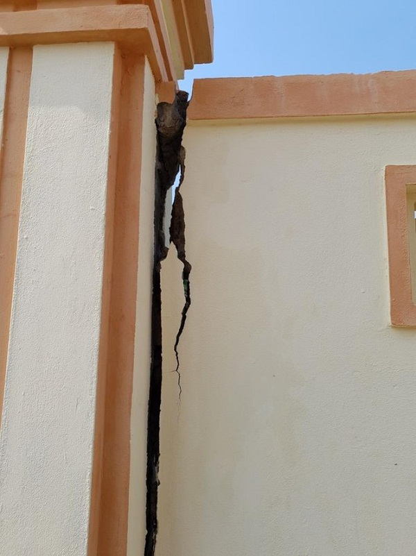 Hoàng loạt vết nứt chạy ngang dọc trên các mảng tường