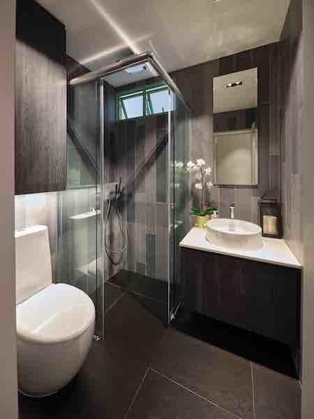 Bảng màu tiếp tục vào phòng tắm chung và toát lên vẻ tinh tế, đẳng cấp.