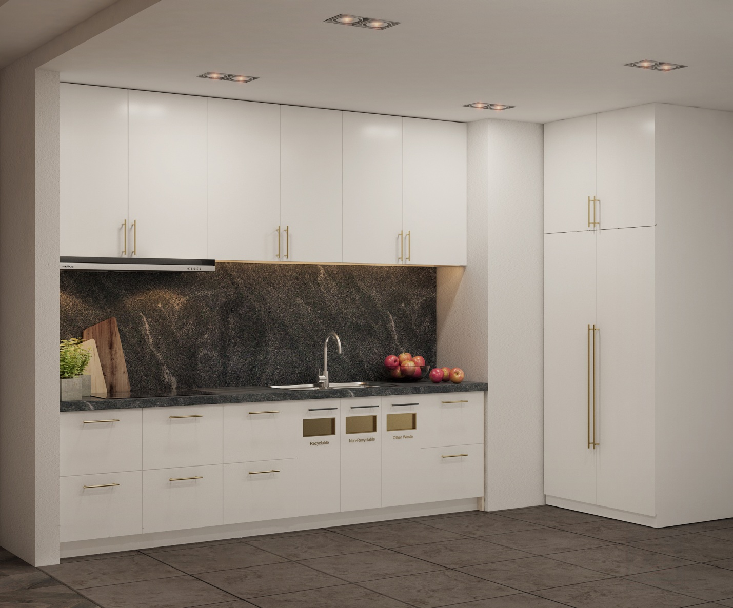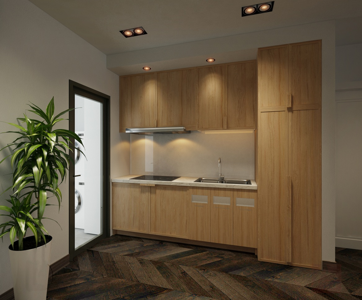 Để phù hợp với nền ẩm thực Việt, DHA Corp đã phát triển thiết kế bếp đóng giúp kiểm soát toàn bộ mùi thức ăn không để bay ra ám mùi vào đồ dùng trong phòng khách khi nấu nướng. Tất cả mùi bay ra khi nấu ăn đều được xử lý trọn vẹn bằng máy hút mùi hoặc thoát ra hướng lô gia.