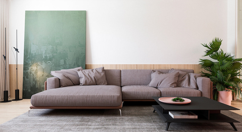 Đồ nội thất được bố trí màu nâu, màu be và một lượng nhỏ màu đen để cân bằng tầm nhìn tổng thể.