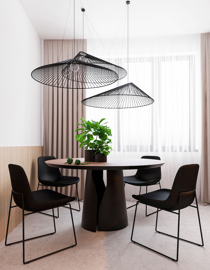 Một góc nhỏ bàn ăn màu đen tinh tế, hiện đại.