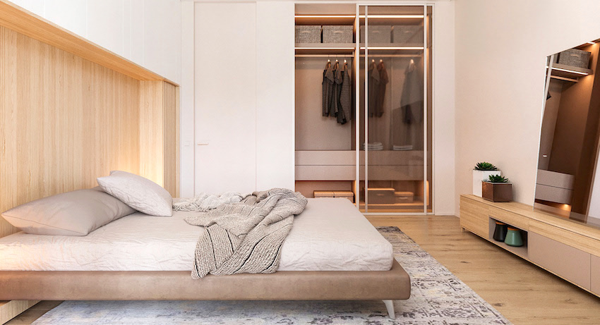 Theo phong cách tối giản nên phòng ngủ của chủ nhà với nội thất đơn giản.