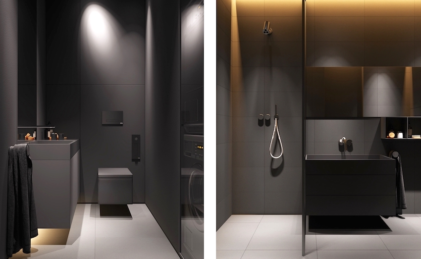 Phòng tắm tạo cho bạn cảm giác sạch sẽ, hiện đại. Bởi vì màu đen hấp thụ nhiều ánh sáng, vì vậy mà bạn luôn phải nghĩ cách đảm bảo cung cấp đủ ánh sáng cho không gian.