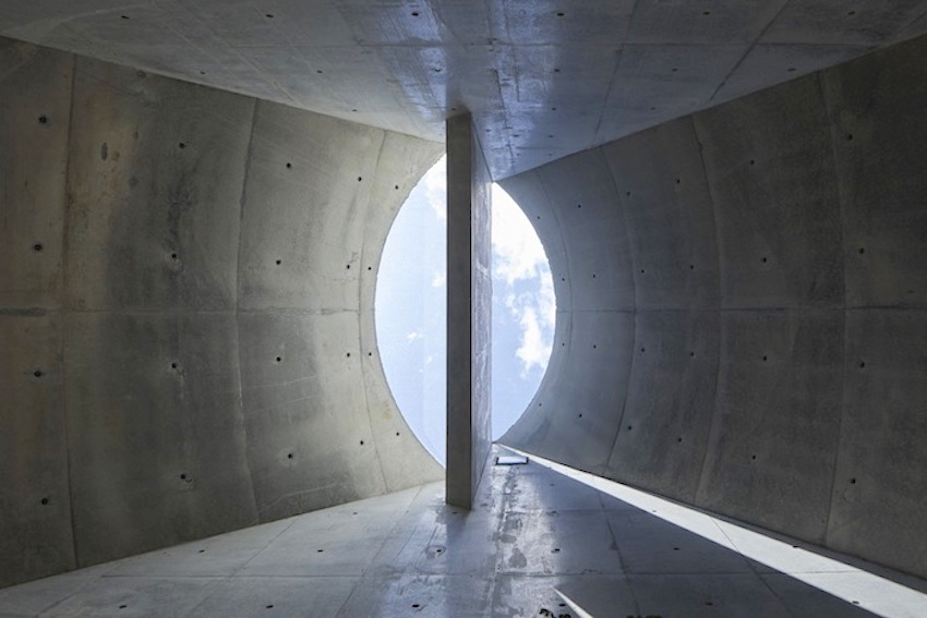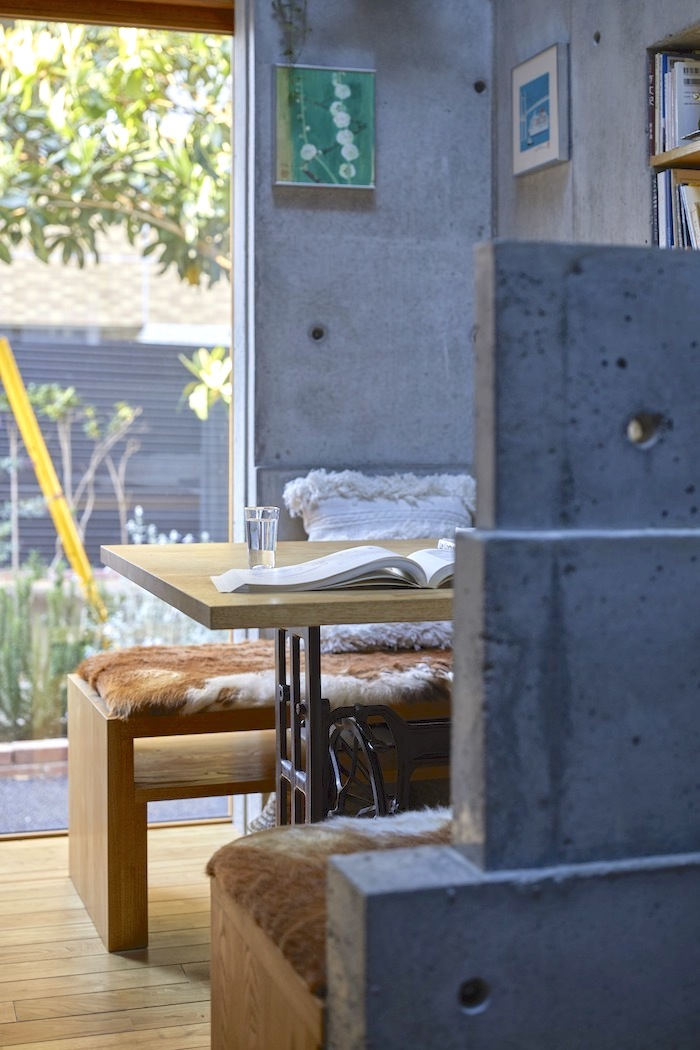 Mái nhà màu xám cong được ghép với cửa kính lớn, làm mờ các đường trong nhà và ngoài trời và cũng có thể tương tác với người qua đường.