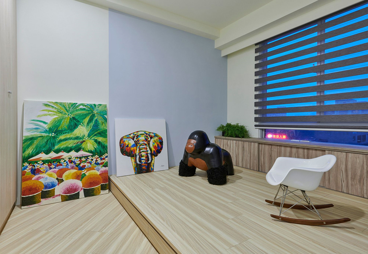 Để tạo ra một môi trường không bị giới hạn phù hợp cho trẻ em chạy và chơi, sàn gỗ được sử dụng, ghế sofa không định hướng cũng được lắp đặt.