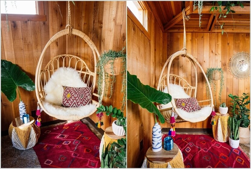 Căn phòng nổi bật với các món đồ phụ kiện chiết trung, những sản phẩm dệt may, bảng màu sặc sỡ, họa tiết ấn tượng lớp chồng lớp, xu hướng nội thất Bohemian có tính nghệ thuật sâu sắc.