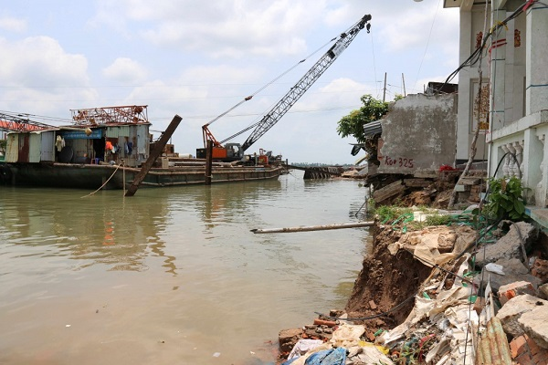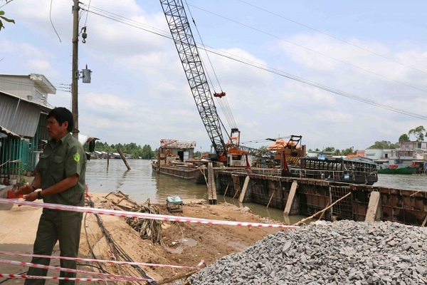 Sạt lở ngay tại khu vực đang thi công bờ kè chống sạt lở ở quận Ô Môn