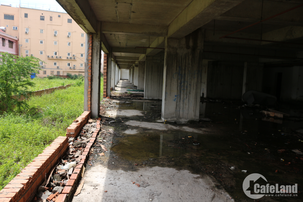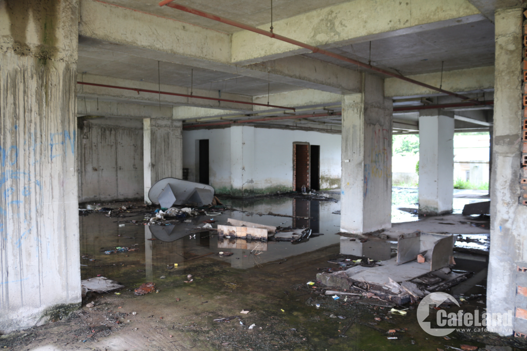 Dự án bị bỏ hoang suốt nhiều năm trời nên xuống cấp, cỏ mọc um tùm bao quanh lối vào.