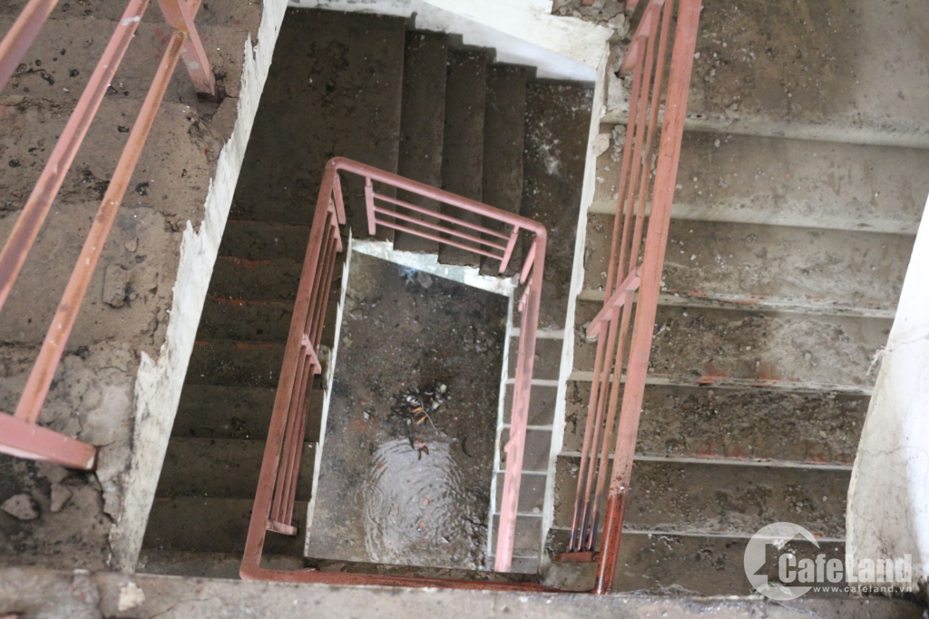 Cầu thang bộ phần khung sắt đã hoen gỉ