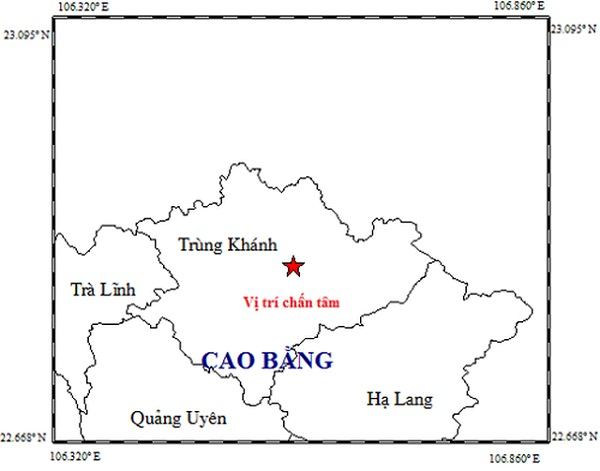 Vị trí chấn tâm động đất ở Cao Bằng sáng nay, 28/11.