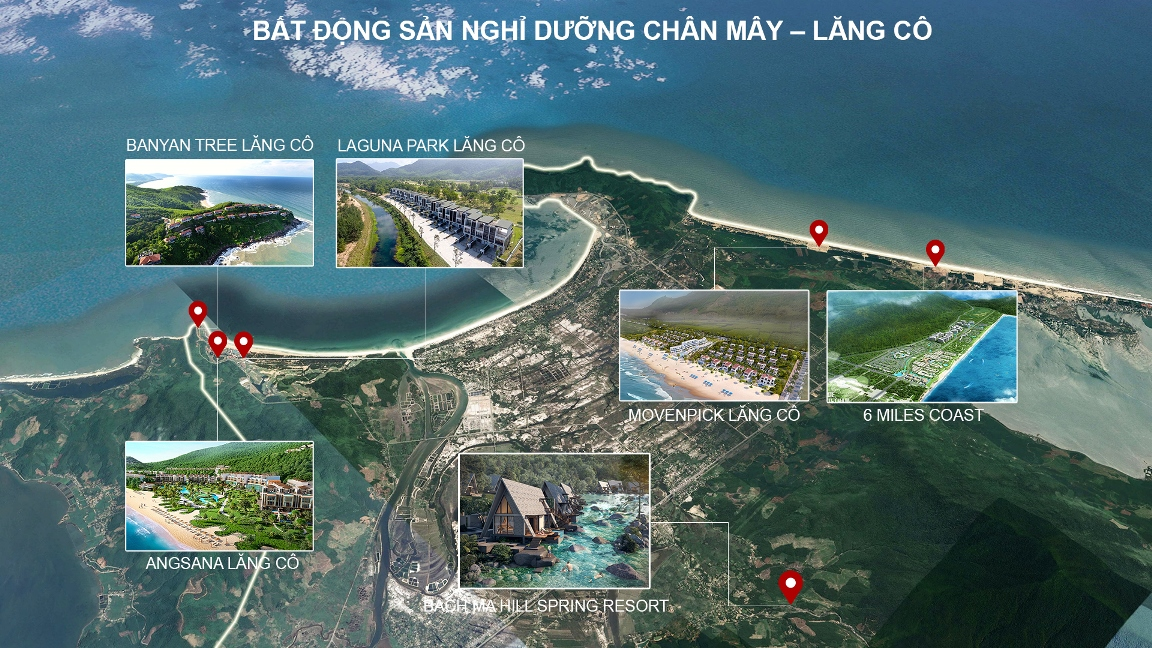 Bên cạnh dự án biển triệu đô đầu tiên tại khu vực Chân Mây - Lăng Cô là Laguna Lăng Cô, đầu tư nghỉ dưỡng biển còn thu hút những cái tên thương hiệu lớn như Movenpick Resort Lăng Cô với tổ hợp 52 căn biệt thự biển sang trọng cho đến thương hiệu mới như dự án KDL quốc tế Minh Viễn – Lăng Cô với tổng mức đầu tư lên đến 368 triệu USD trên 102 ha.