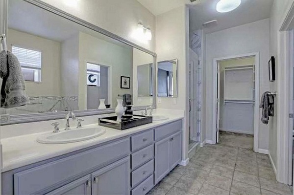 Có thể thấy, tổ ấm tại Mỹ của Nhật Tinh Anh được thiết kế theo phong cách hiện đại, tinh tế với tông màu chủ đạo là ghi xám, không gian phòng khách đơn giản nhưng đem lại cảm giác trang nhã.