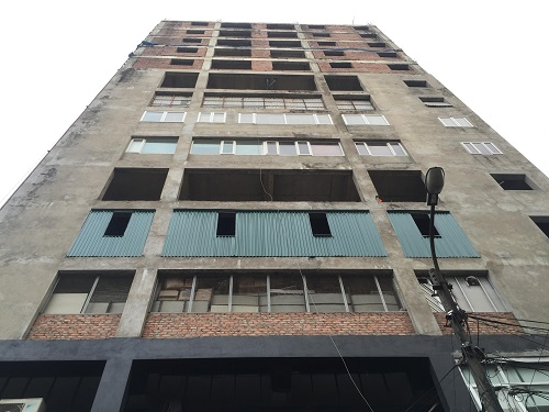 Tòa nhà hỗn hợp dịch vụ, văn phòng và nhà ở kinh doanh tại số 131 Thái Hà (quận Đống Đa, Hà Nội) được thi công cách đây gần chục năm nhưng đến giờ vẫn dở dang, không có thời hạn hoàn thành. Điều đáng nói, dù chưa xây xong nhưng chủ đầu tư đã cho các đơn vị thuê mặt bằng kinh doanh “tùm lum” gây mất mỹ quan đô thị và vi phạm các quy định hiện hành.