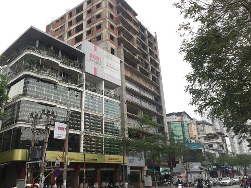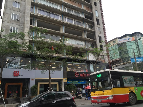 Dự án 131 Thái Hà (Đống Đa, Hà Nội) chưa hoàn thành dự án nhưng đang cho thuê kinh doanh tầng 1 và tầng 2 để làm cửa hàng, siêu thị.
