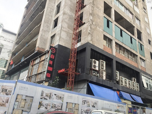 Được biết, công trình chưa hoàn thiện, chưa nghiệm thu dự án thì không được phép đưa vào sử dụng. Vì vậy, hành vi cho thuê kinh doanh làm cửa hàng, làm siêu thị tại dự án đã vi phạm trật tự xây dựng. Dù công trình vẫn treo tấm biển thông tin về dự án nhưng công trường không một bóng công nhân xây dựng. Bên cạnh đó, xung quanh tòa nhà được quây bằng những tấm biển quảng cáo cỡ lớn quảng cáo.